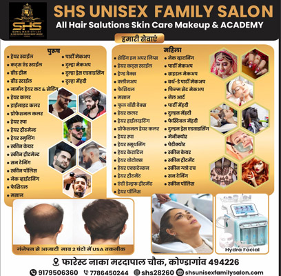 Welcome to SHS Family Salon – your go-to place for hair, skin, and beauty care. Located in the heart of Kondagaon,Chhattisgarh, we offer expert services in a friendly, relaxing space.